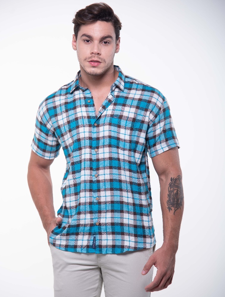 CAMISA MC XADREZ AZUL TURQUESA