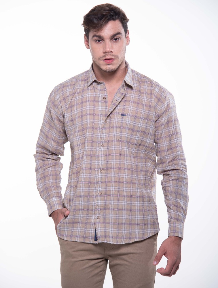 CAMISA ML XADREZ 2023 CAQUI COM ROSA