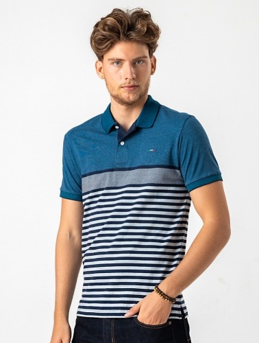POLO COMFORT LISTRADA AZUL