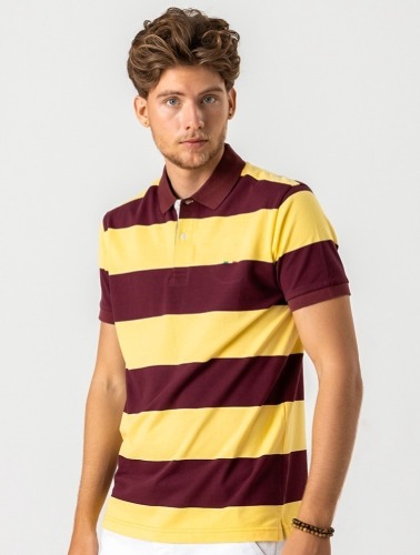 POLO COMFORT LISTRADA VINHO E AMARELO