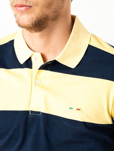 POLO COMFORT LISTRADA AMARELO E AZUL